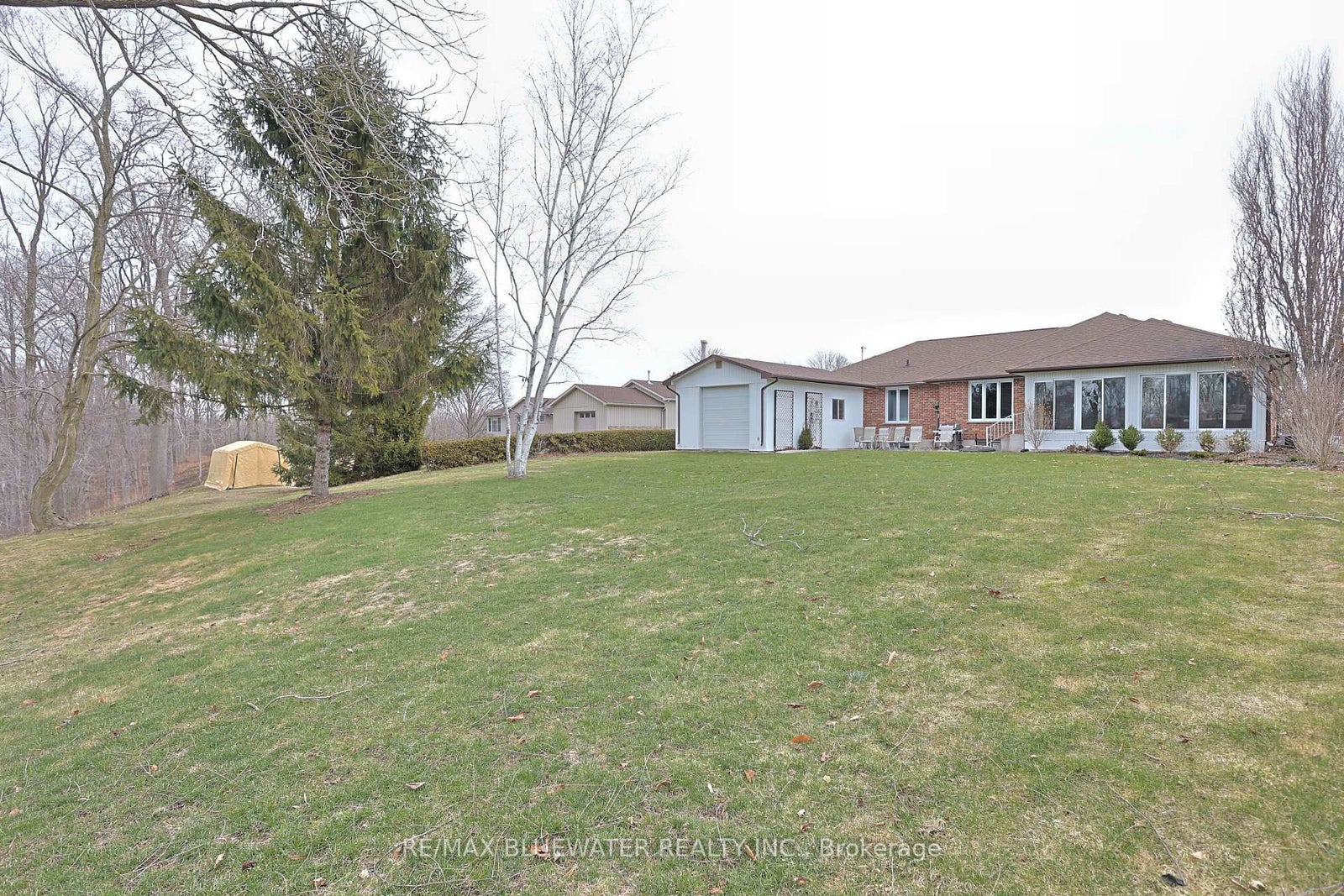 Sprawling brick ranch on a half-acre lot backing onto a mature treed setting at the end of a quiet cul de sac in Parkhill. At first glance you notice the amazing curb appeal with the symmetrical façade that includes a double car garage, clean brick exterior and covered front entry with sitting area. Nicely landscaped with a flagstone walkway, concrete driveway and stone garden edges. Inside the home features a spacious floor plan flowing with natural light with finishes that include hardwood flooring and crown molding. Large front entrance for welcoming guests into your home. Open concept living space with the dining room and living room overlooking the back yard. The kitchen features oak cabinets with hard surface countertops, tile backsplash, pantry cabinet and LG stainless steel appliance. Primary bedroom with ensuite plus 2 additional guest rooms and full bath on the main floor. Mudroom with laundry off the garage. Year-round sunroom overlooking the back yard with pine paneled walls and 6 patio doors that can open to nature. Full finished basement includes a family room with brick feature wall and gas fireplace. Lots of options for a sitting area, pool table or library and reading room. Media room with knotty pine walls is a great place for movie night! 2 bedrooms and full bathroom finish of the living space while still leaving room for storage and utilities. Double car garage attached with inside entry and storage off the back side plus a 26' x 16' detached shop in the back yard with overhead door and wood fireplace. The large backyard backing onto nature and a mature tree setting is your view from the patio off the sunroom. A great place to raise your family and call home!