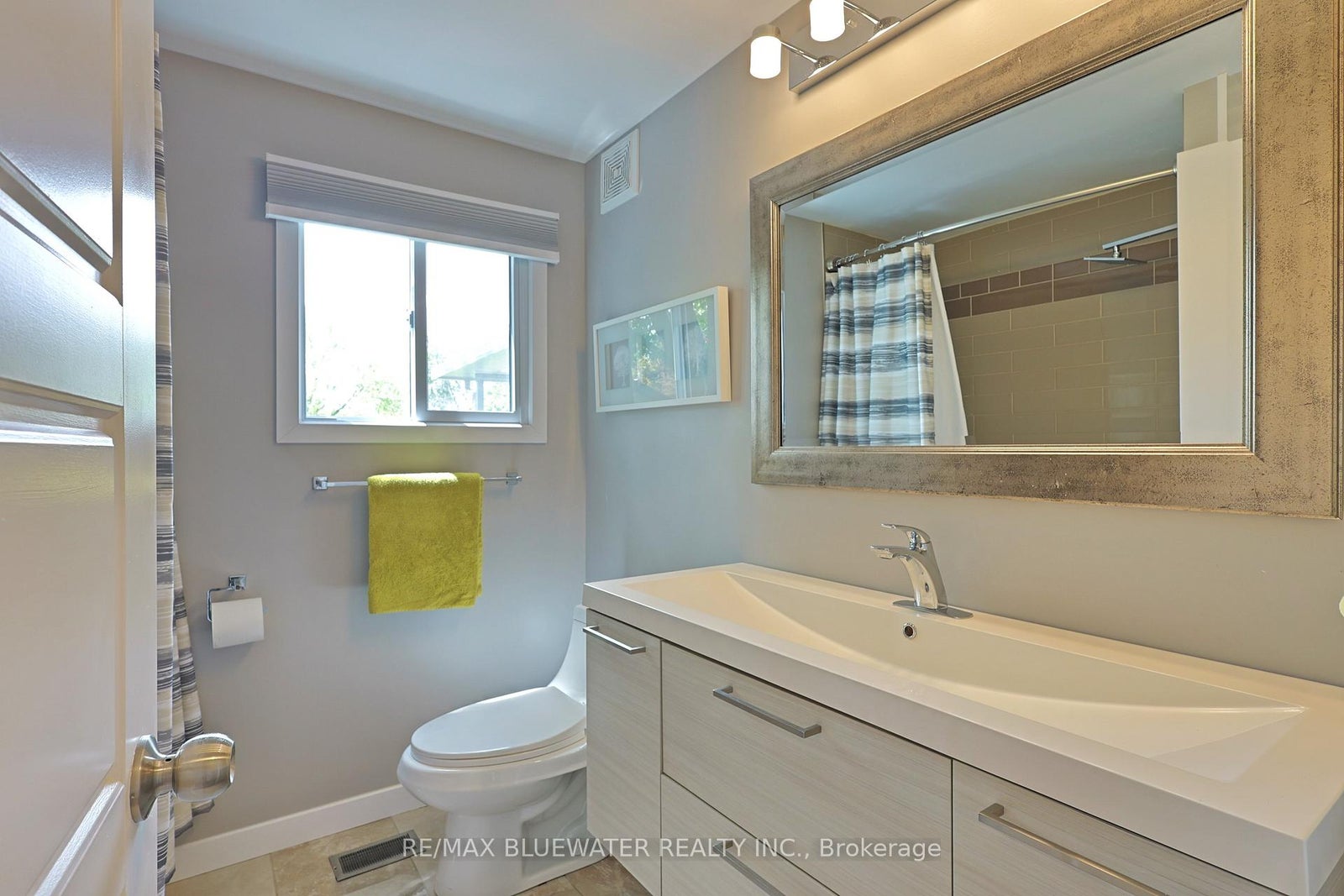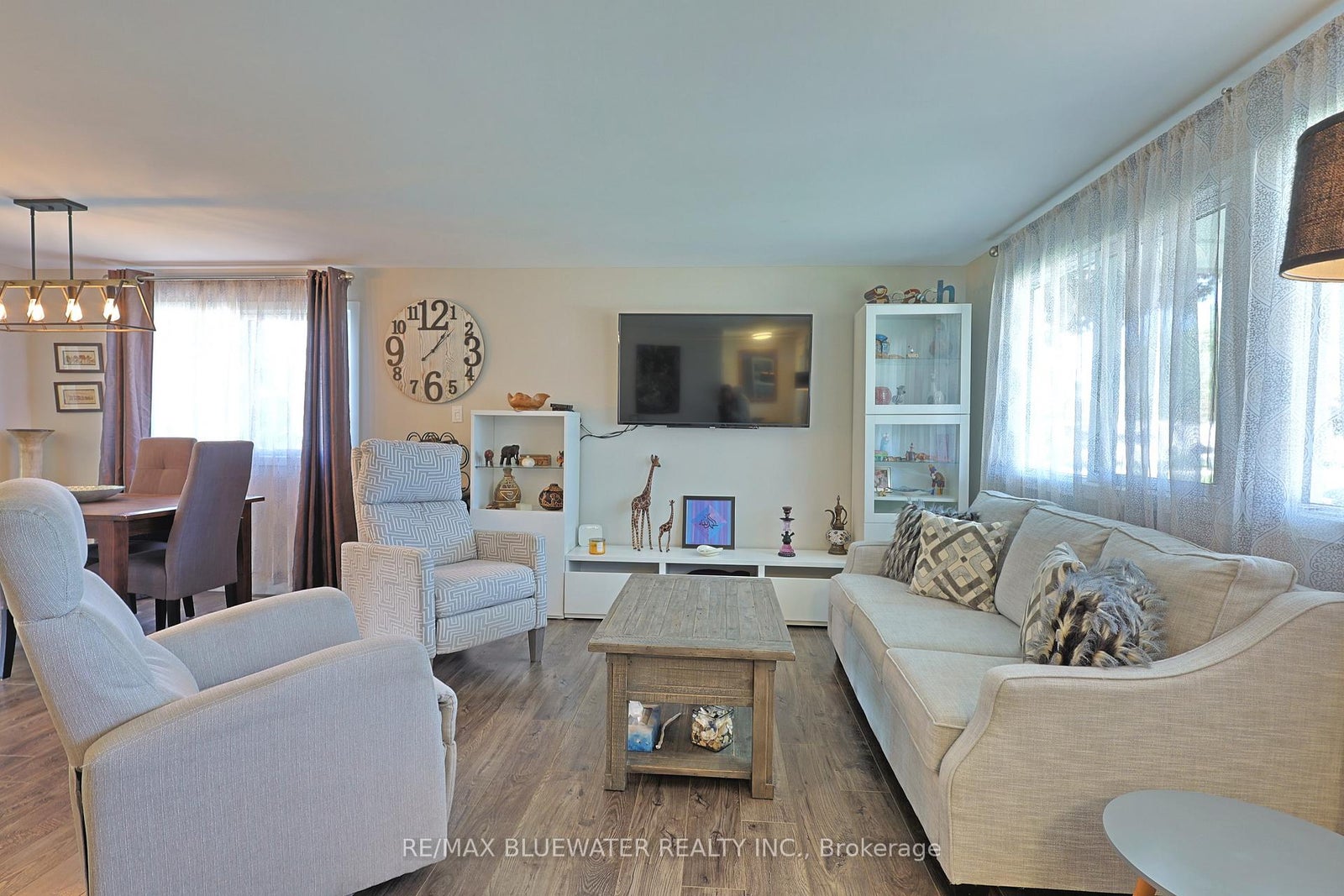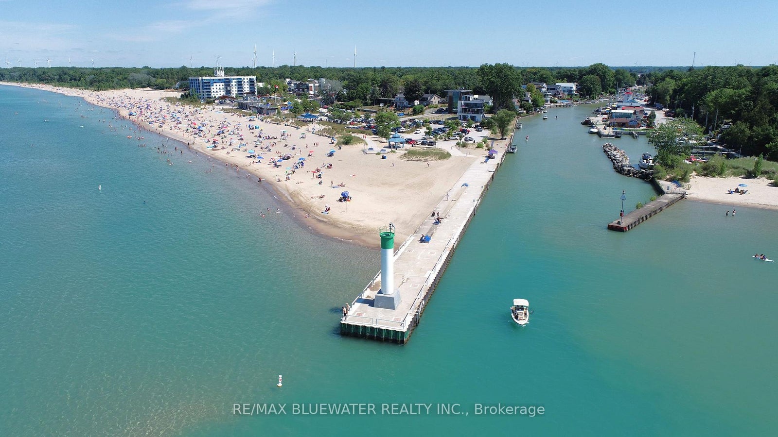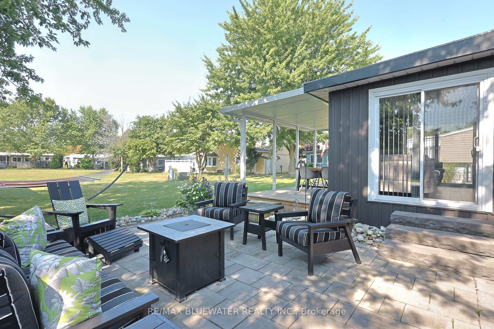PRICE JUST REDUCED $15k! TURN KEY TOTALLY RENOVATED HOME IN 2014 BACKING ONTO GREENSPACE IN GRAND COVE ESTATES. Situated in the land leased community of Grand Cove Estates. This is your perfect getaway that was totally renovated back to the studs in 2014. These renovations include plumbing, electrical, siding, metal roof, doors, windows, drywall, trim, flooring, kitchen, bathrooms, decks, landscaping and every other thing in the home! Tastefully redesigned allowing for wide open concept floorplan flowing in the bonus room overlooking an expansive green space. Kitchen offers lots of cabinetry with pass through window into bonus room making easy work of getting things to the BBQ. New countertops installed 2024. Bonus room overlooking greenspace allows for sliding door to stone patio and another sliding door to wraparound deck. Along with bay window for ample natural light creating a great space to kick back. Home offers two bedrooms and a fully updated four piece bathroom that allows for a tub with tiled surround. Front covered porch awning and back covered porch awning installed 2024. Both covered portions connected by 4 ft wide wrap around deck. All leading to the 16'x18' stone patio with privacy fences allowing for lots of privacy. BONUS: ALL CHATTELS EXCLUDING ARTWORK/PERSONAL ITEMS AS SEEN IN PERSON CAN BE INCLUDED IN ADDITION TO THE LISTED PURCHASE PRICE. This would include 2024 heavy duty patio furniture from Casual Industries, high end couches, chairs, dining set, island barstools, primary bed set, kayak, lawnmower & much more! Grand Cove has activities for everybody from the heated salt water pool, tennis courts, wood working shop, garden plots, lawn bowling, nature trails and so much more. Land lease fees of $915.58 per month includes access to all amenities and taxes. Only a short walk to downtown Grand Bend and the sandy beaches of Lake Huron with the world famous sunsets. Come view this home today and enjoy life in Grand Bend!