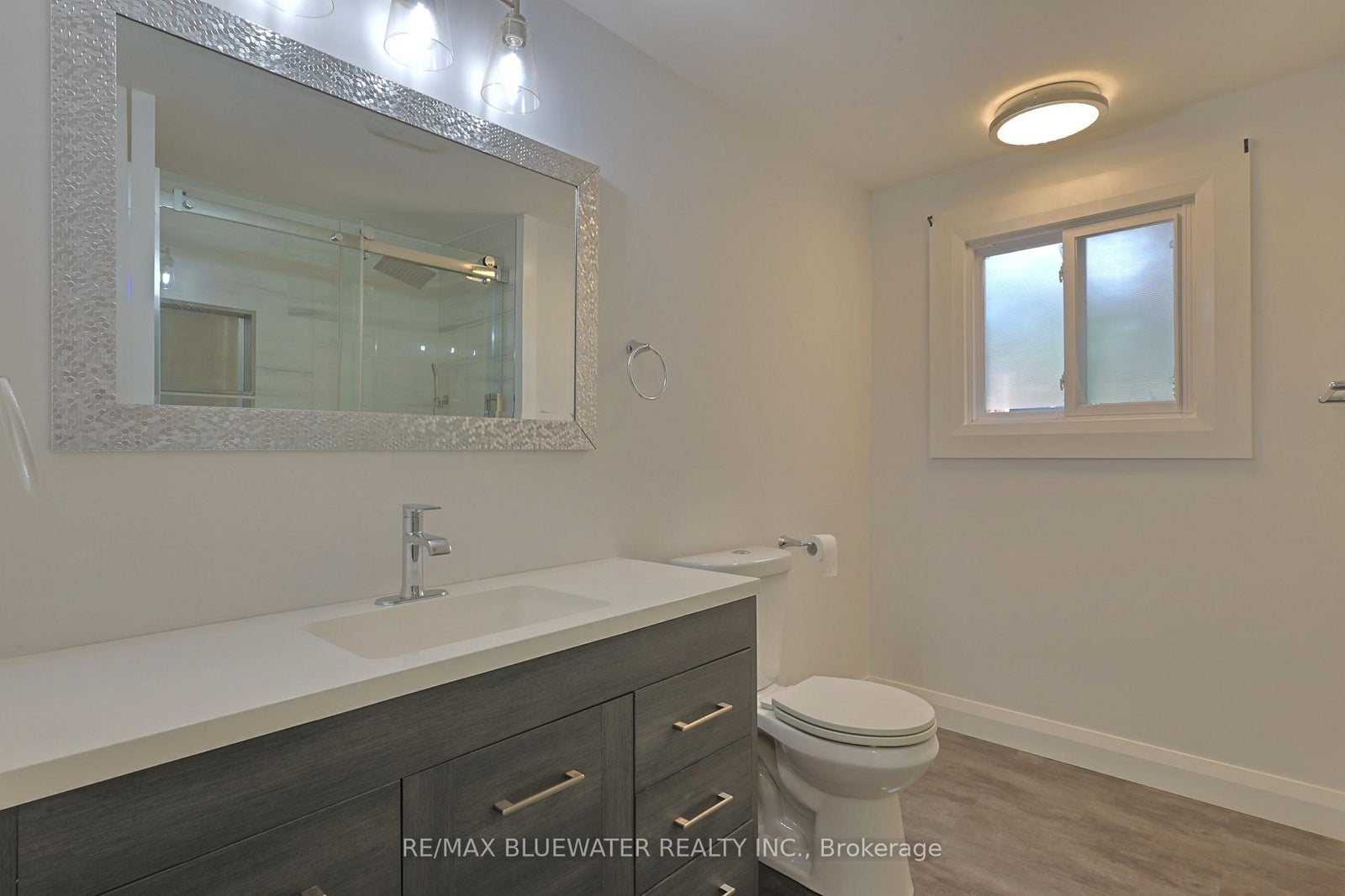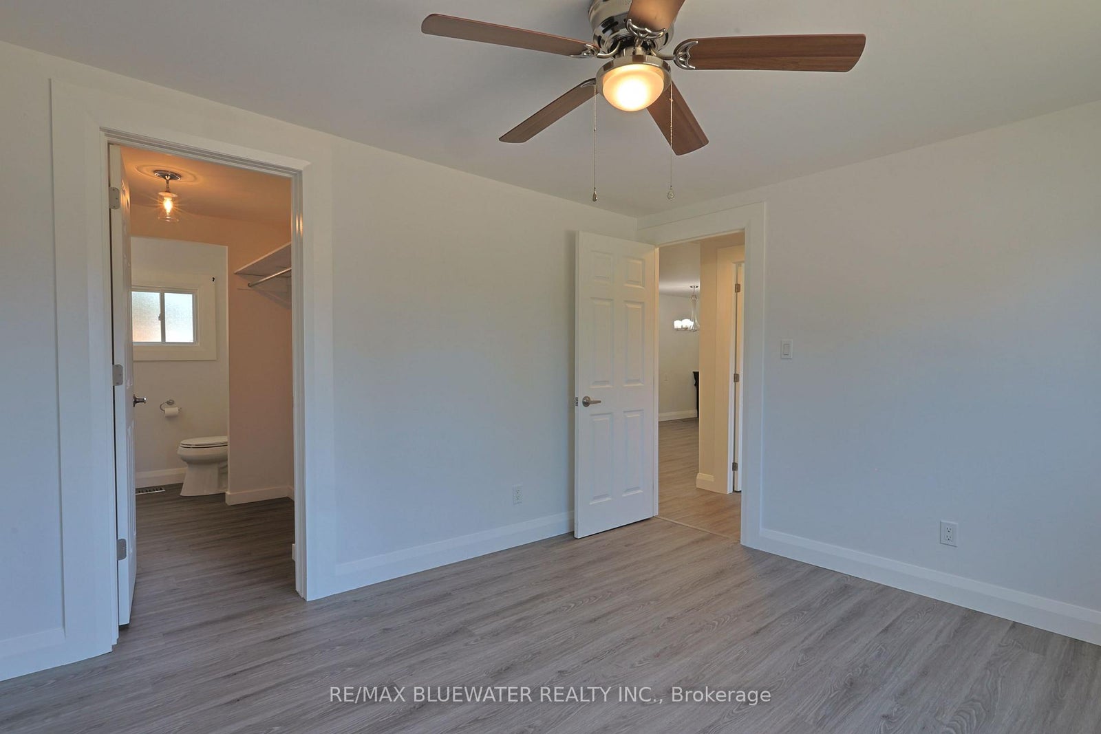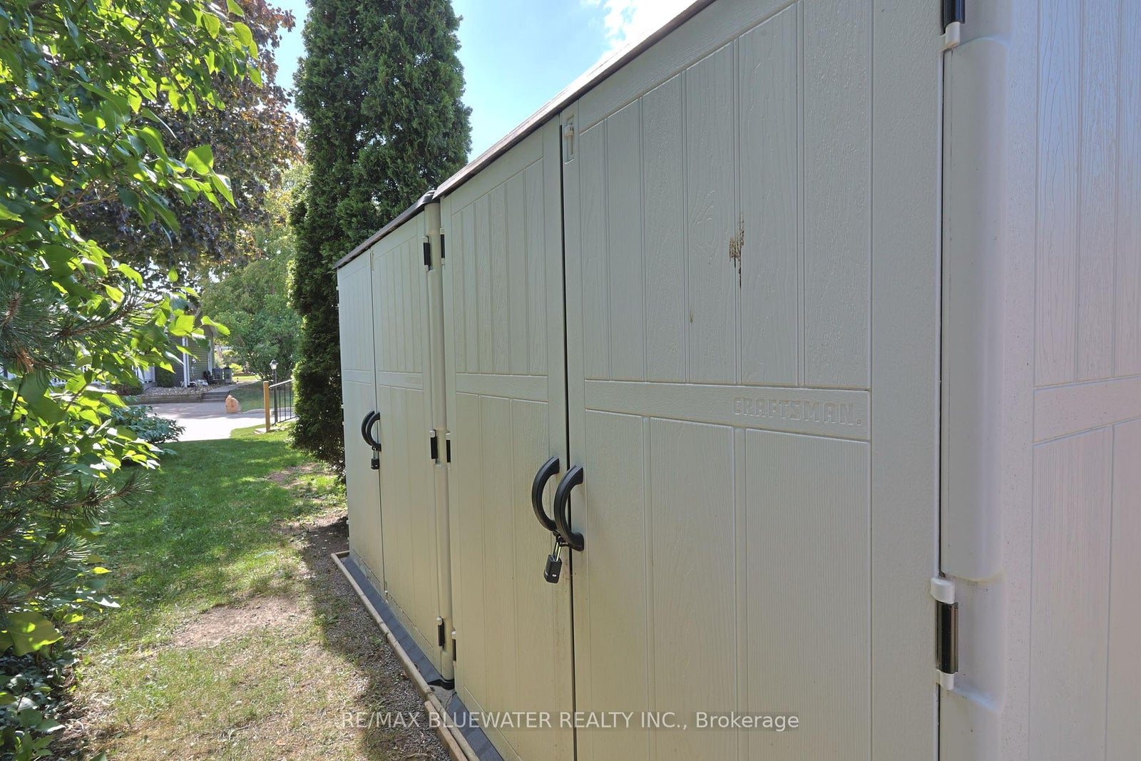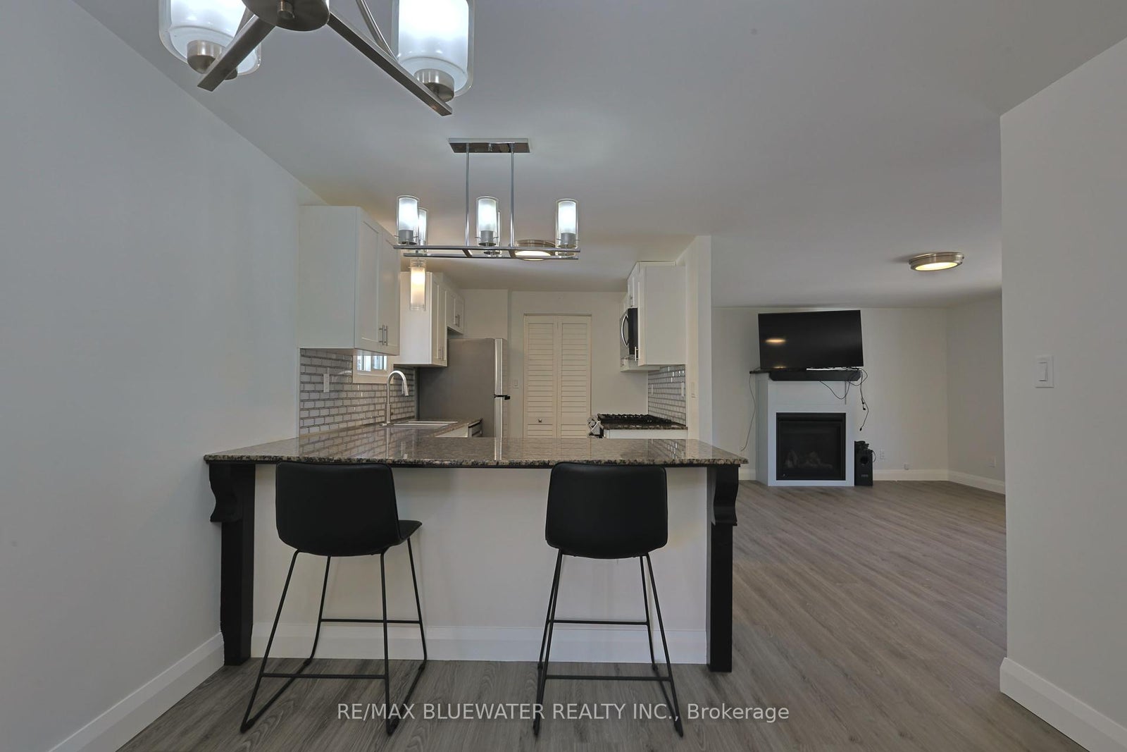 Welcome to 34 Pebble Beach Parkway where you will find a fully updated in 2022 interior and exterior home waiting for its new owners to enjoy! Great curb appeal with vinyl siding, vinyl windows, metal roof and front covered porch. Nicely updated interior with drywall throughout, fresh coat of paint, vinyl flooring throughout and lots of windows of windows for natural light. This floorplan with two BONUS rooms allows for a total of 1,296 square feet. The spacious entrance foyer with double closets heads into the den area with sliding doors to back deck. Open concept floorplan with large dining area, kitchen and living room. Kitchen has been totally updated with new cupboards, granite counters, tiled backsplash and stainless steel appliances. Living room with gas fireplace and TV with surround system that is included. Primary bedroom with walk through closet and two piece ensuite. Home allows for a spacious full bathroom with glass tiled shower and a second guest bedroom. Home is outfitted with an on demand GENERAC Generator so you are never left in the dark! Grand Cove Estates is a 55+ land lease community located in the heart of Grand Bend. Grand Cove has activities for everybody from the heated saltwater pool, tennis courts, woodworking shop, garden plots, lawn bowling, dog park, green space, nature trails and so much more. All this and you are only a short walk to downtown Grand Bend and the sandy beaches of Lake Huron with the world-famous sunsets. Monthly land lease fee of $922.72 includes land lease, access to all amenities and taxes.