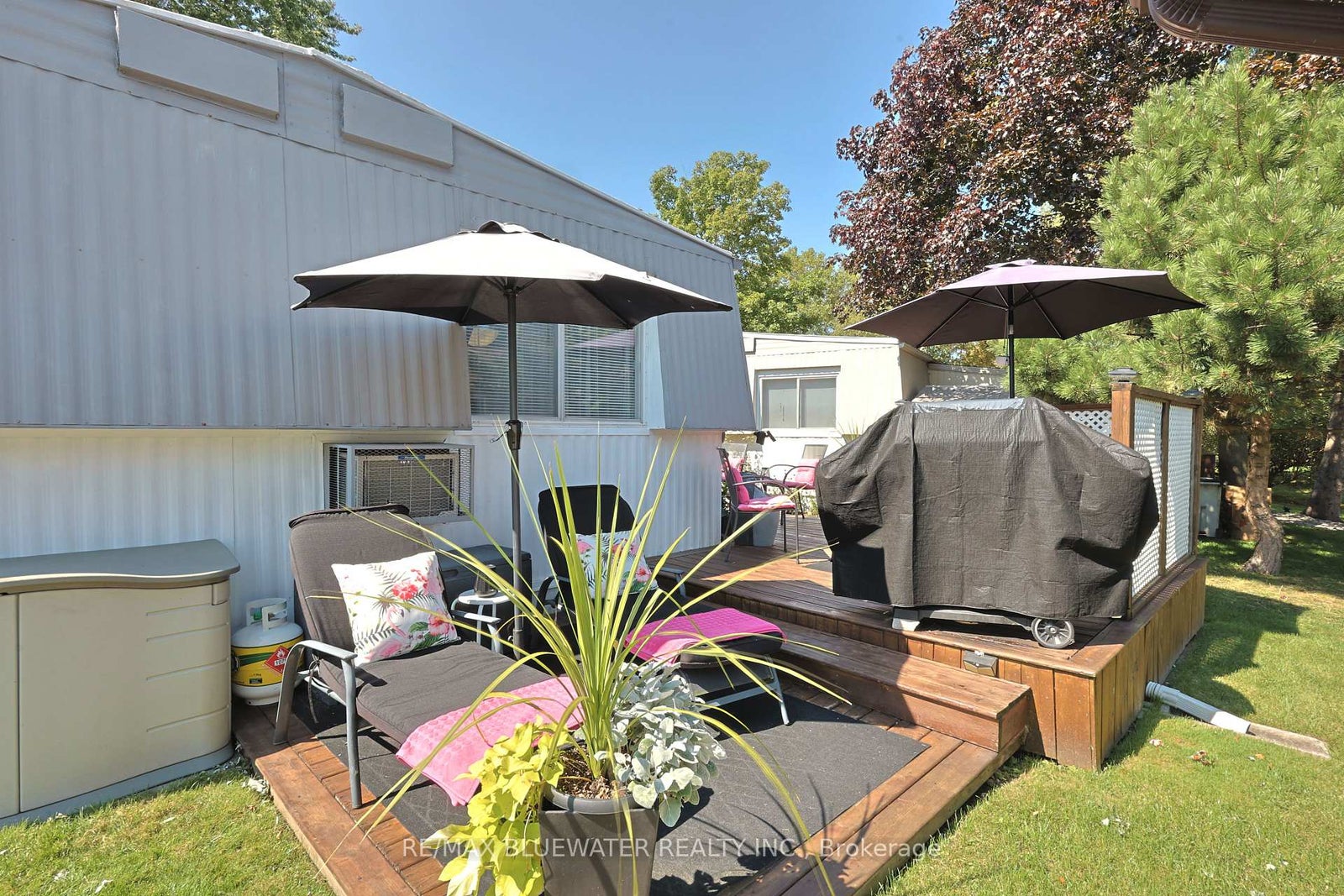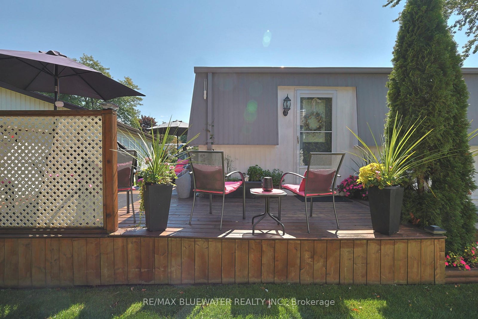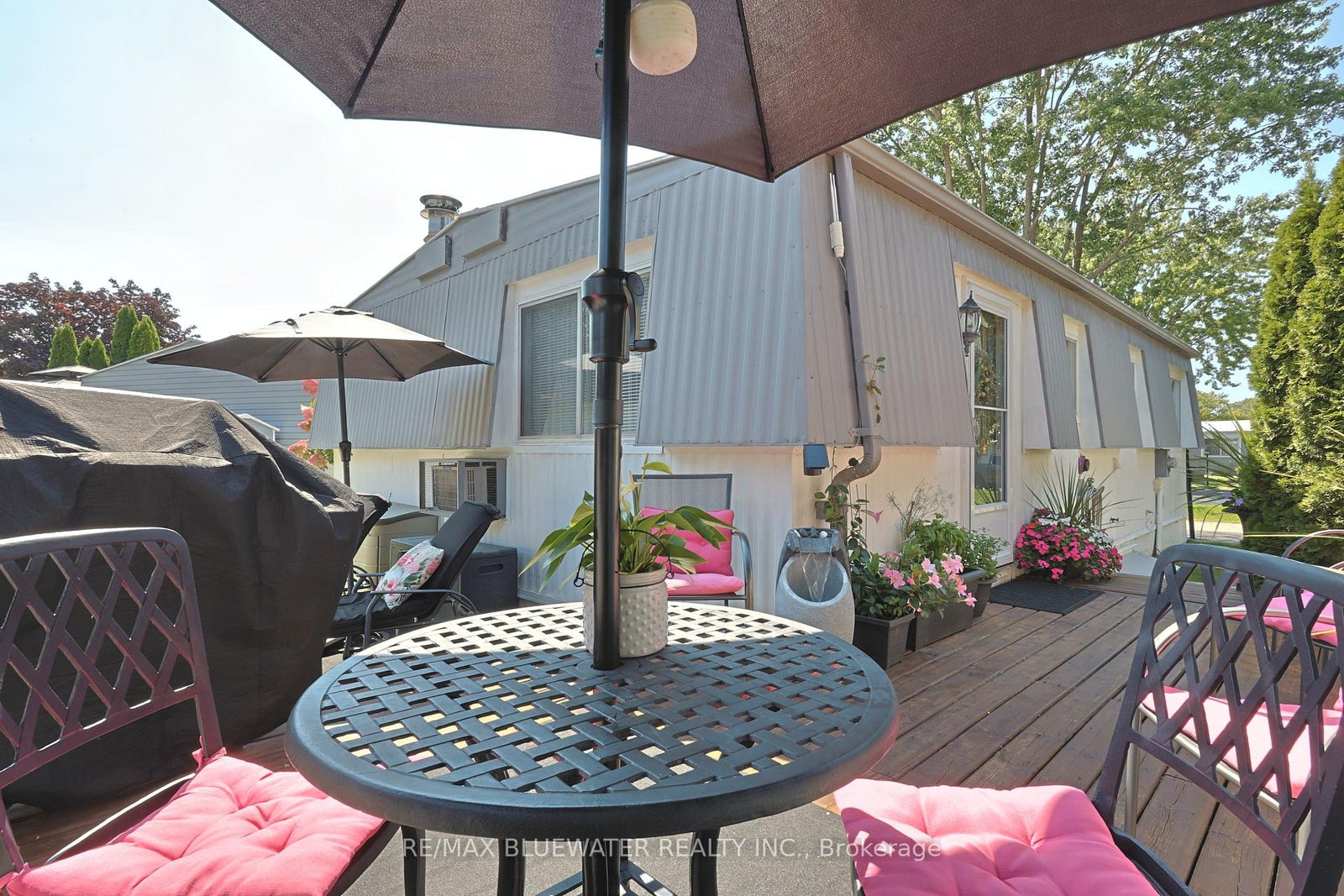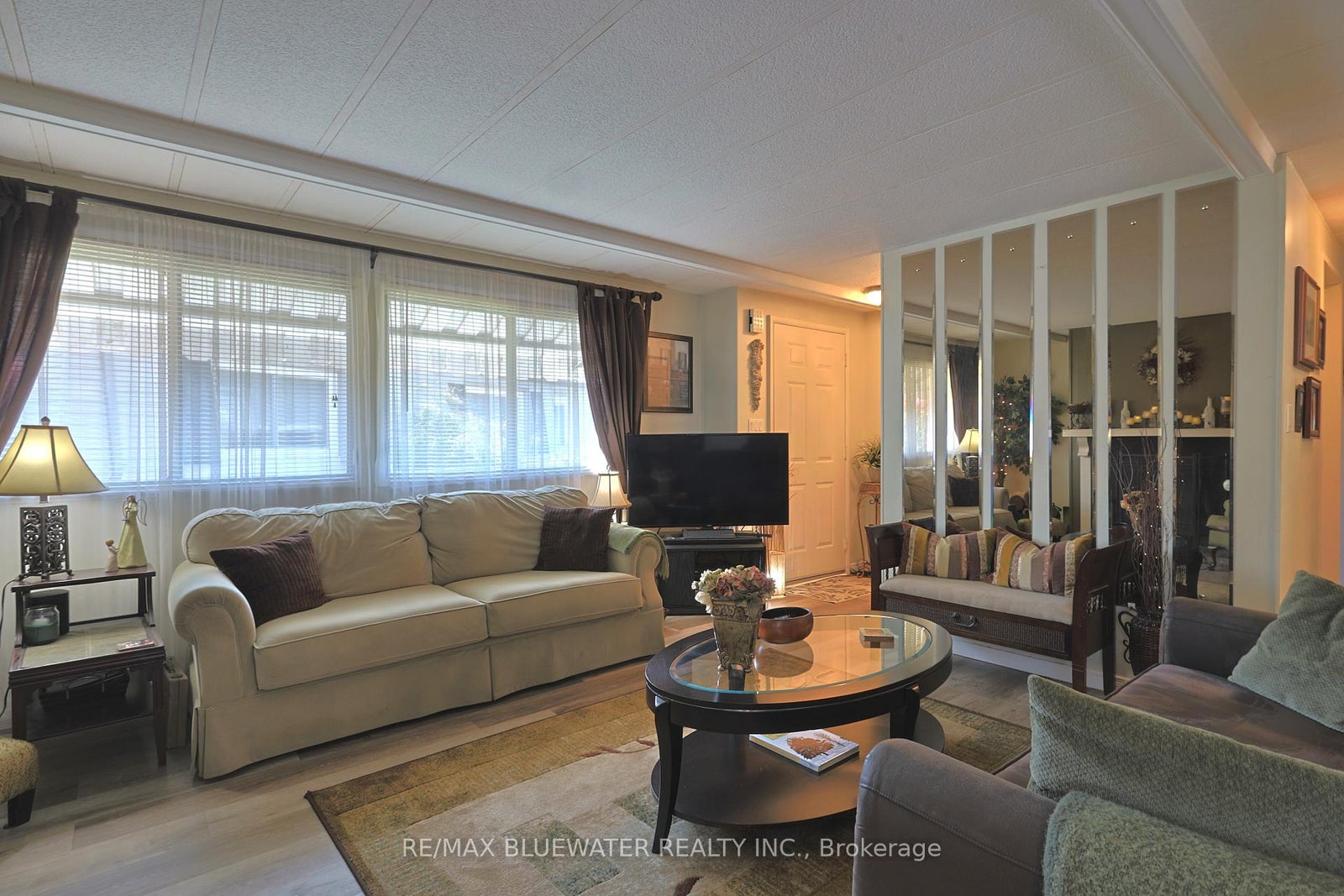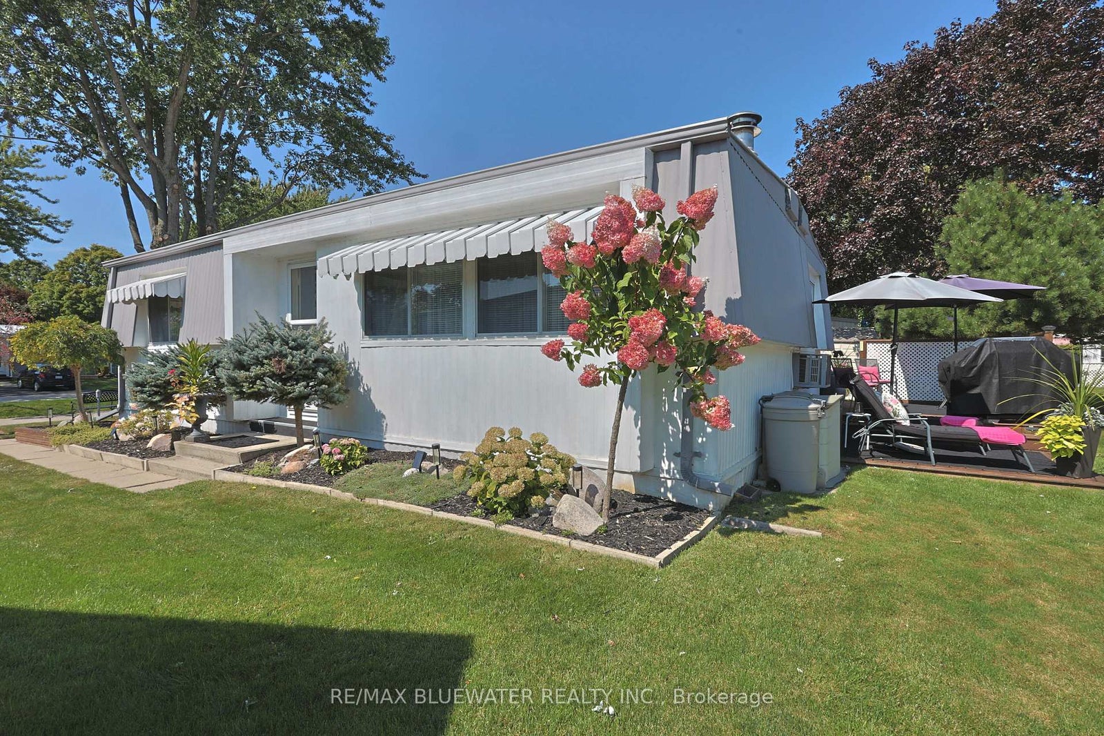 Welcome to 208 Biltmore Drive, Grand Bend in the 55+ leased land adult community of Grand Cove Estates! Situated on a private cul-de-sac offering beautifully landscaped gardens. Deck offers privacy and space to relax outside with room for lots of patio furniture. This Pinery Model allows for lots of natural light throughout and updated laminate flooring throughout living space. Kitchen is just off the dining area and offers door to back deck for easy access for BBQ season. Living room with wood fireplace makes for a cozy feeling even during the colder months. This floorplan allows for spacious primary bedroom, second bedroom/den/office and full four piece bathroom with jetted tub! Grand Cove Estates is a 55+ land lease community located in the heart of Grand Bend. Grand Cove has activities for everybody from the heated saltwater pool, tennis courts, woodworking shop, garden plots, lawn bowling, dog park, green space, nature trails and so much more. All this and you are only a short walk to downtown Grand Bend and the sandy beaches of Lake Huron with the world-famous sunsets. Monthly land lease fee of $915.52 includes land lease, access to all amenities and taxes.