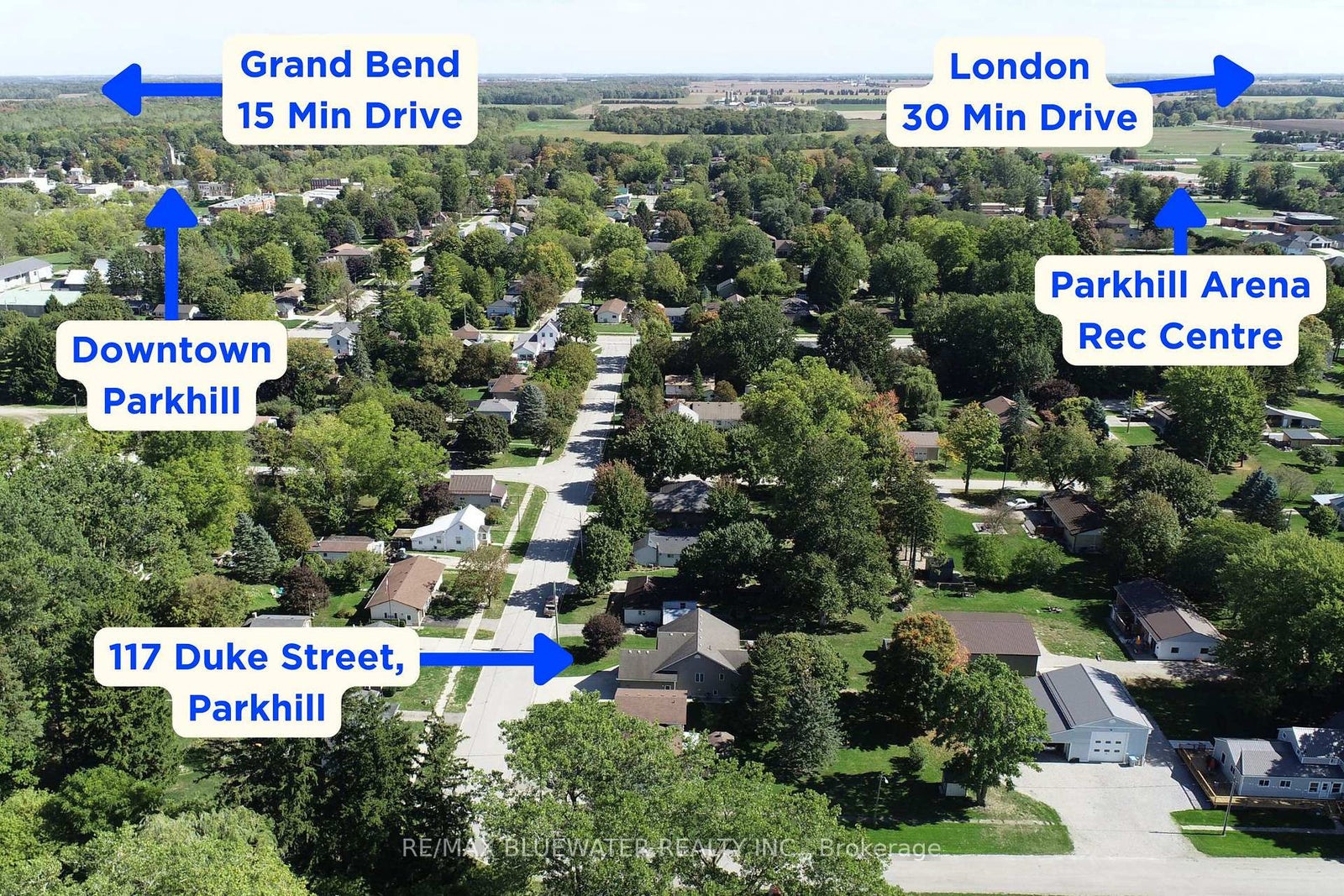 Welcome to 117 Duke Street, Parkhill where you find the perfect blend of home and property! Raised bungalow built in 2008 offering 2,044 sq ft of living space with attached double car garage on a 66'x165' lot. Great curb appeal with double wide concrete driveway leading to double car garage and concrete path to front covered porch. Step inside to an open concept floorplan with lots of windows for natural light. Living room off of dining area with sliding doors to back deck. Kitchen offers eat-up island, stainless steel appliances, tiled backsplash and much more. Primary bedroom with walk-in closet and three piece ensuite. Main floor allows for second bedroom with walk-in closet and full four piece bathroom. Step partially down to the mudroom with access to attached garage and laundry room. Heading to the lower level where you get a spacious rec room with gas fireplace and updated vinyl flooring throughout. This level allows for another large bedroom and full three piece bathroom. Spacious utility/storage room has space for all the extra stuff. Home has just been totally repainted so you got a blank canvas to start hanging your photos! Step onto the back deck where you have room for a dining table and a few steps down to another expansive deck overlooking the spacious backyard with covered gazebo. Lots of space for yard games and vegetable gardens. Home is nicely landscaped with a garden shed to hold all your garden tools. Parkhill is a great town with amenities for all ages including community groups, rec centre (arena, gym, tennis courts, baseball diamond and more), parks, downtown core and more!